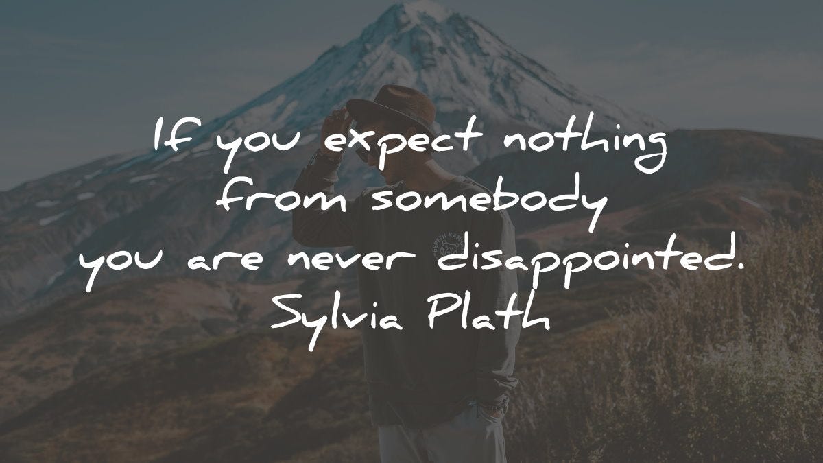 If you expect nothing from somebody you are never disappointed. Sylvia Plath